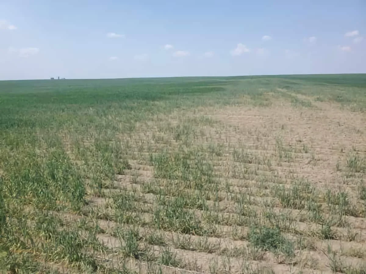 This is a durum crop in the Leader - Liebenthal area, that has been destroyed by grasshoppers and dry weather. SUBMITTED PHOTO