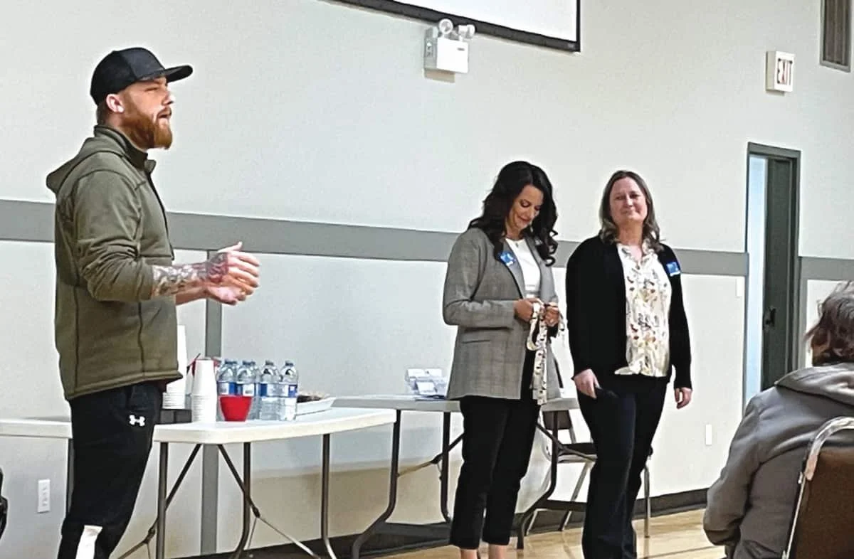 Cst. Smit and ATB Financial reps Daina Wilson and Branch Manager Jenna Bingeman offer tips to avoid fraud and scams. Photo by Maryann Oliver, Executive Director FCSS