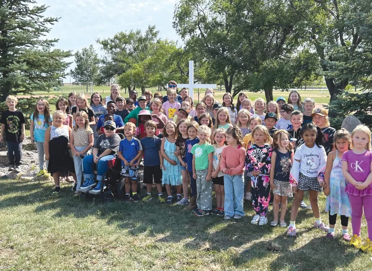 Ms. Wolfe, new principal at Assumption is surrounded by her new students in the Prayer Garden. Welcome Ms. Wolfe we are excited to have you at Assumption School in Oyen! SUBMITTED PHOTO