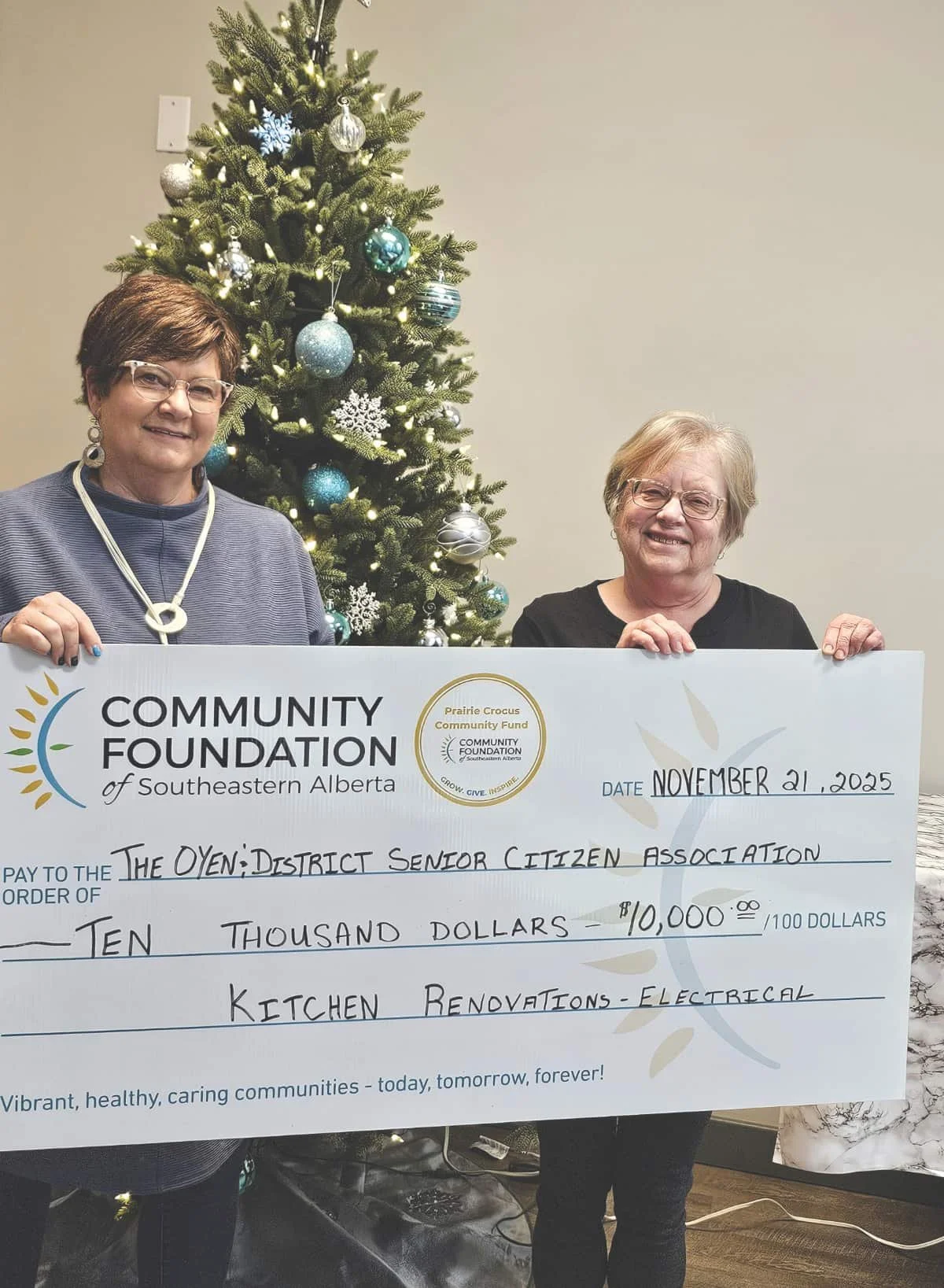 The Oyen and District Senior Citizens Association received a $10,000 Prairie Crocus Community Fund grant to support electrical upgrades as part of kitchen renovations in the Seniors building. The improvements enhance safety, accessibility and long-term community use.